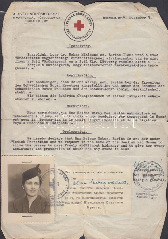 1944 Budapesti Svéd Vöröskereszt által kiadott fényképes személyazonos... https://www.darabanth.com/de/19-Gross-Auktion/19.1/Kunst-Dokumente/Dokument~6533/1944-Budapesti-Sved-Voroskereszt-altal-kiadott-fenykepes-szemelyazonossagi-igazolvany-Ide~II940556