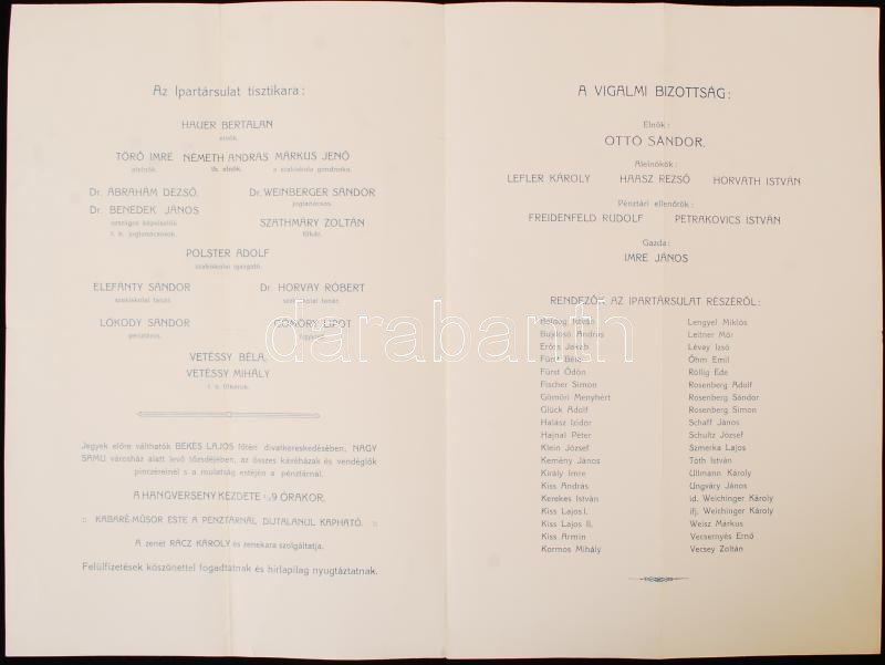 1910 Debreceni szállodások és vendéglősők és pincérek táncmulatságára ... https://www.darabanth.com/de/19-Gross-Auktion/19.1/Kunst-Dokumente/Drucksachen~6485/1910-Debreceni-szallodasok-es-vendeglosok-es-pincerek-tancmulatsagara-szolo-meghivo-4~II933846