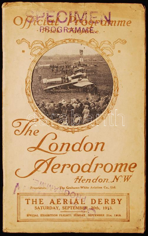 1913 London Aerodrome programfüzet sok képpel / Program booklet with m... https://www.darabanth.com/de/19-Gross-Auktion/19.1/Kunst-Dokumente/Drucksachen~6485/1913-London-Aerodrome-programfuzet-sok-keppel-Program-booklet-with-many-pictures-48p~II926296