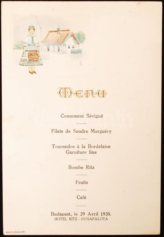 1938 Budapest Duna palota menükártya https://www.darabanth.com/de/19-Gross-Auktion/19.1/Kunst-Dokumente/Drucksachen~6485/1938-Budapest-Duna-palota-menukartya~II933835
