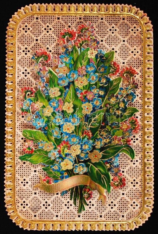 Beschreibung: cca 1870 Csipke, litho üdvözlőkártya hozzá való borítékban / Embroided litho greeting card