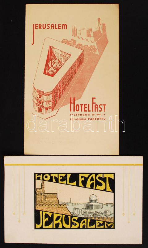 cca 1930 Jerusalem 2db Hotel ismertető füzet. / Jerusalem 2 hotel guid... https://www.darabanth.com/de/19-Gross-Auktion/19.1/Kunst-Dokumente/Drucksachen~6485/cca-1930-Jerusalem-2db-Hotel-ismerteto-fuzet-Jerusalem-2-hotel-guides~II899209