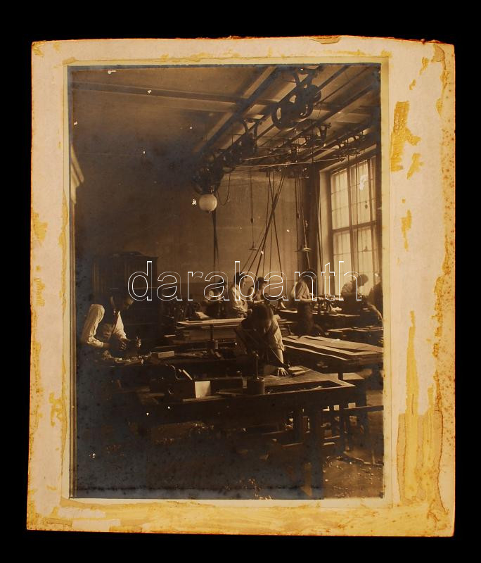 Beschreibung: 1907 Julius Staudt: Berlini faipari oktató műhelyben, 23x17 cm, karton 27x23 cm /