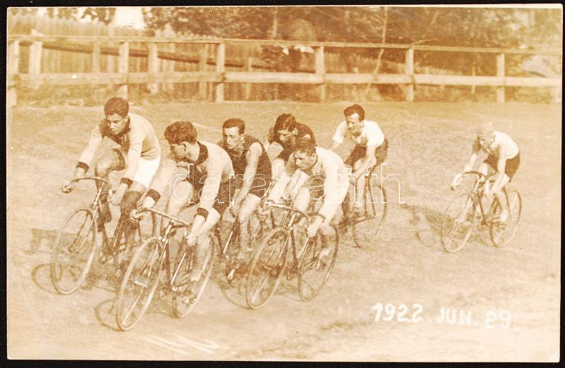 1922. június 29. Varga: Kerékpárosok versenye a budapesti Millenáris V... https://www.darabanth.com/de/19-Gross-Auktion/19.1/Kunst-Dokumente/Foto~6534/1922-junius-29-Varga-Kerekparosok-versenye-a-budapesti-Millenaris-Velodrom-ban-fotolap-9x1~II931267