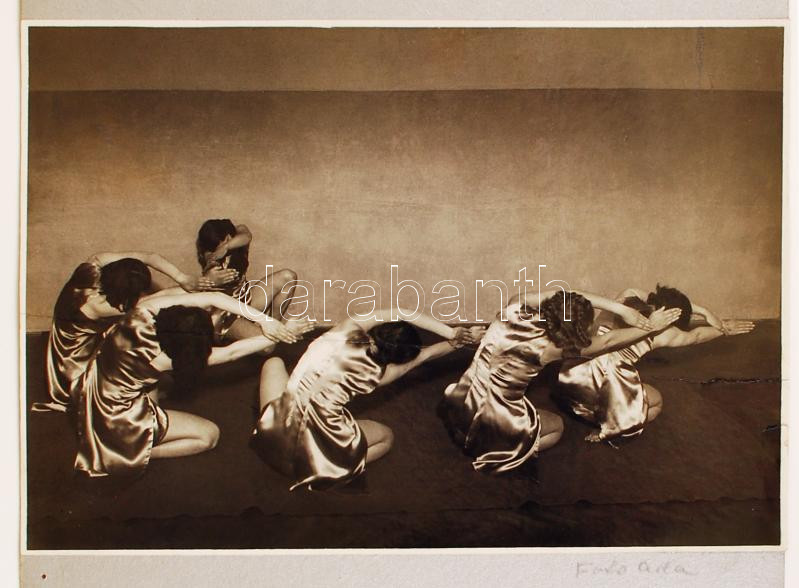 Beschreibung: 1932 Ada fotó (Marsowszky Elmérnérné): Kinefónia, ülő félkör, a Szentpál iskola hallgatóinak mozgásművészeti kompozíciója, feliratozott, aláírással jelzett vintage fotó, lapszéli sérüléssel, fotóméret 16x24 cm, karton 34x24 cm