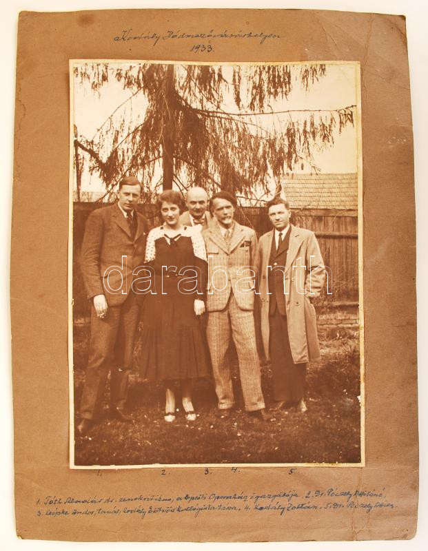 1933 Kodály Zoltán Hódmezővásárhelyen. A fotón Tóth Aladár az Operahéz igazgatója, Péczely Attila orvos, népzenekutató, muzeológus feleségével és Csépke Andor. Feliratozott fotó. Képméret: 16x26 cm