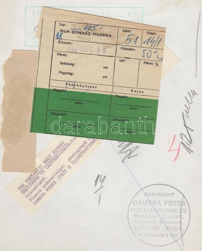 1966 Lawrence J. Schiller: A fantasztikus Walt Disney (1901-1966) Disneyland polgárai között, sajtófotó angolul feliratozva, a Film-Színház-Muzsikában publikálva 1966/51. sz.), 25x17 cm /