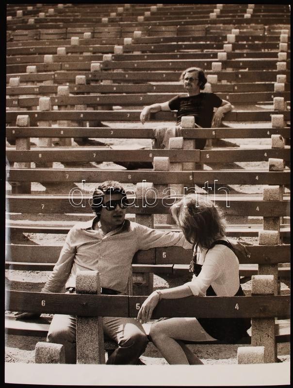 1974 Keleti Éva: Sztankay István, Káldi Nóra és Balázs Péter színészek, jelzetlen, bemutatva a Magyarország ma című fotókiállításon 1975-ben, a Magyar Munkásmozgalmi Múzeumban, 18x22 cm