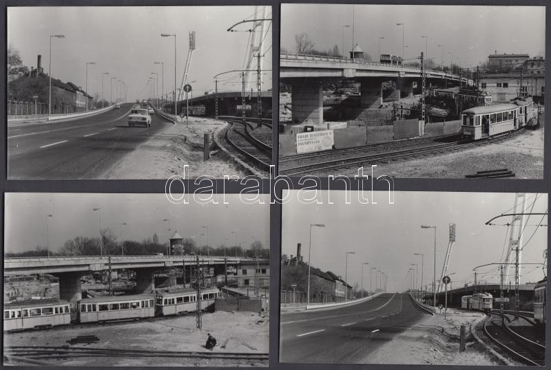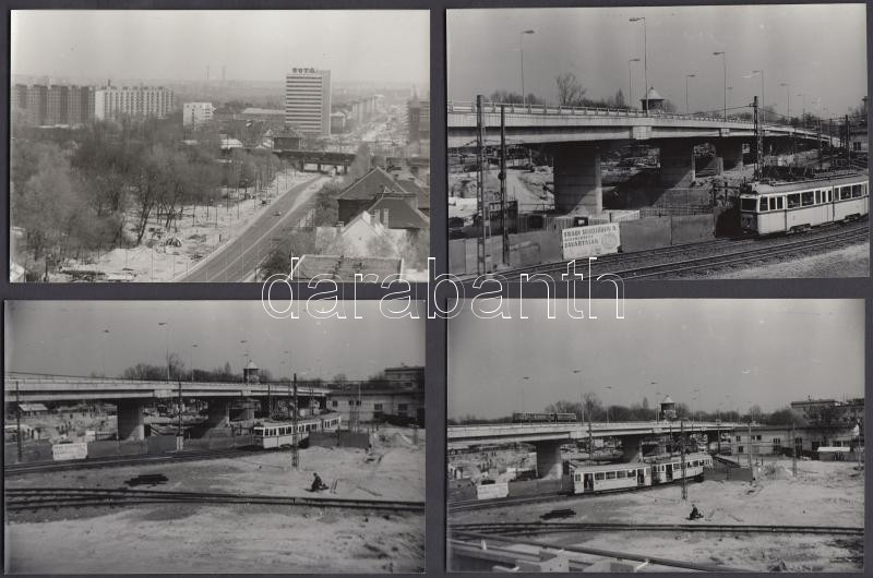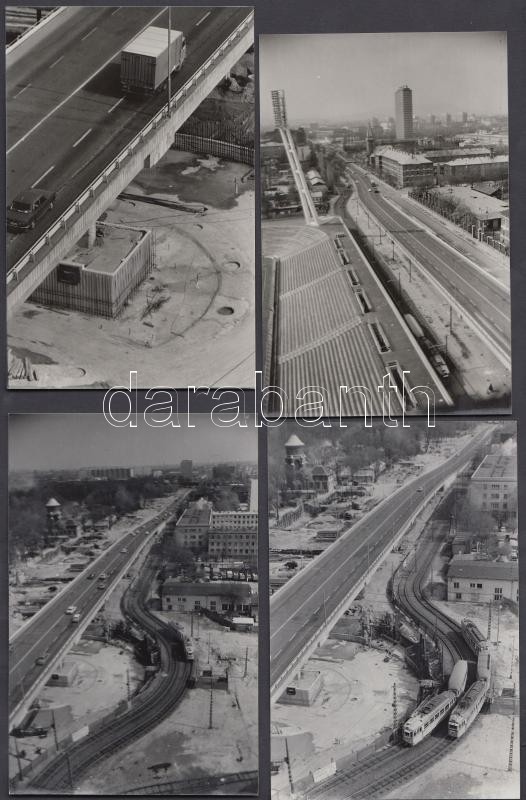 1979 Budapest, Az Üllői út és a Könyves Kálmán krt. csomópontjának átépítése, városkép a Fradi pálya lámpaoszlopainak tetejéről, 13 db fénykép, 9x14 cm