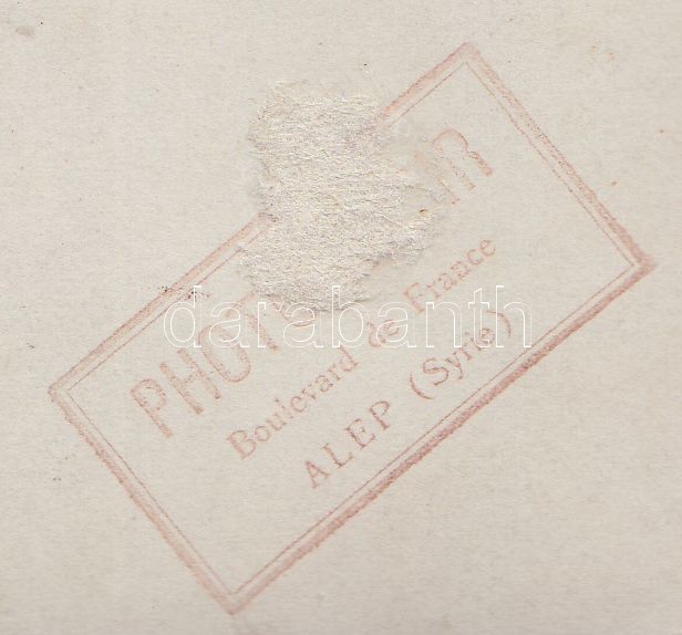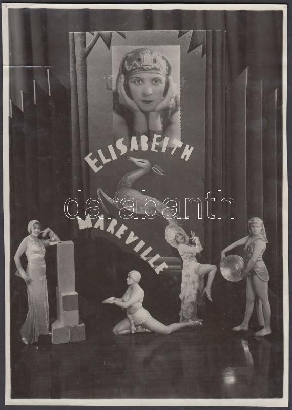 cca 1920-1930 Alep (Syrie): Elisabeth Mareville, a lokálok őzike szemű táncosnője, reklám fotómontázs, pecséttel jelzett, felső részén törésnyom, 22x16 cm