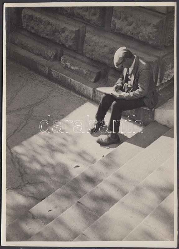 cca 1930-1935 Imre Kinszki (1901-1945): Man with newspaper, artist's stamp and signature on the verso, 18x13 cm
