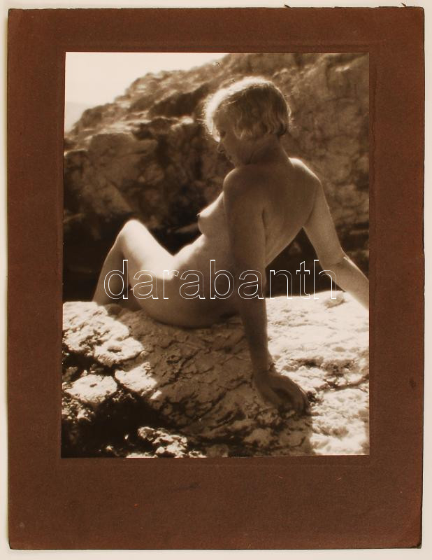 cca 1930-1940 Dr. Csörgeő Tibor (1869-1968): Tengerparti kényeztetés, jelzetlen vintage fotó a szerző hagyatékából, albumlapra felragasztva, képméret 24x18, karton 32x24 cm