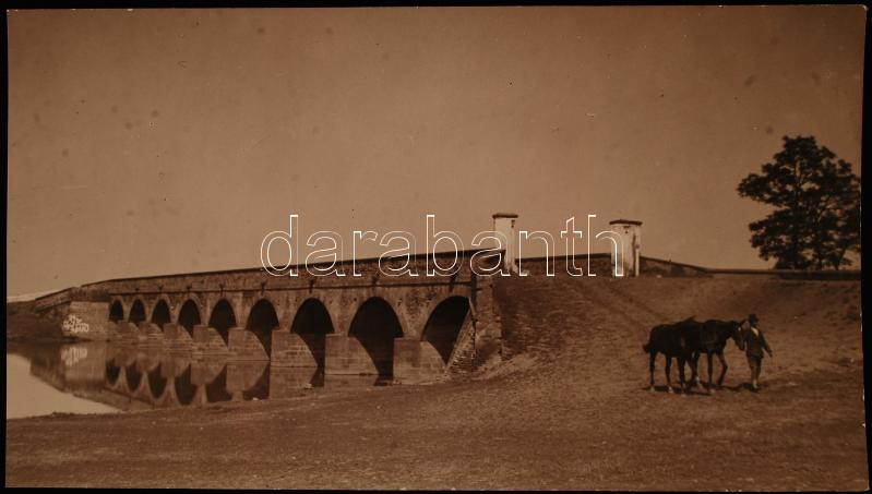 cca 1930-1940 Kerny István (1879-1963): A Hortobágyi-hídnál, pecséttel jelzett vintage fotóművészeti alkotás, 11,5x21 cm /
