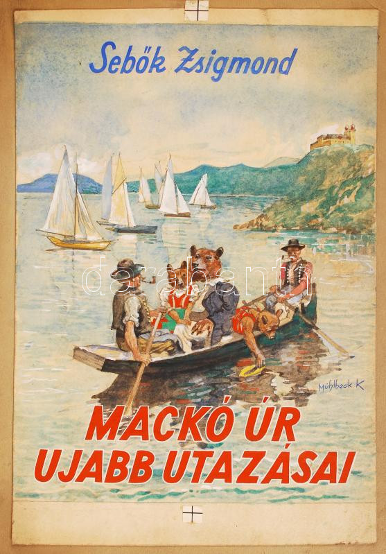 Mühlbeck Károly (1869-1943): Mackó úr újabb utazásai (borítóterv). Akv... https://www.darabanth.com/de/19-Gross-Auktion/19.1/Kunst-Dokumente/Gemalde-und-Grafiken~6486/Muhlbeck-Karoly-1869-1943-Macko-ur-ujabb-utazasai-boritoterv-Akvarell-papir-jelzett~II937349