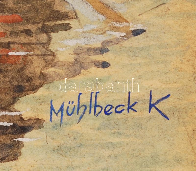 Beschreibung: Mühlbeck Károly (1869-1943): Mackó úr újabb utazásai (borítóterv). Akvarell, papír, jelzett, 25×19 cm
