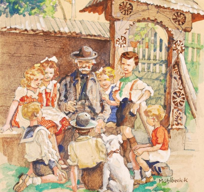 Mühlbeck Károly (1869-1943): Nagyapóéknál (borítóterv). Akvarell, papí... https://www.darabanth.com/de/19-Gross-Auktion/19.1/Kunst-Dokumente/Gemalde-und-Grafiken~6486/Muhlbeck-Karoly-1869-1943-Nagyapoeknal-boritoterv-Akvarell-papir-jelzett-23C39715-cm~II937346