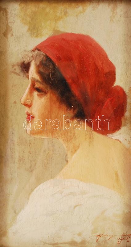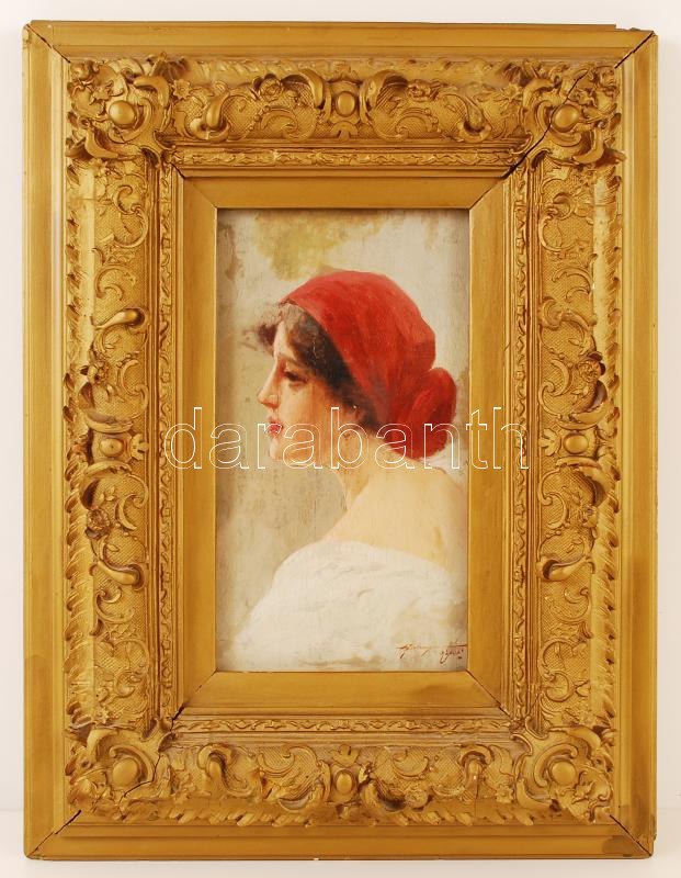 Olvashatatlan jelzéssel: Fejkendős nő. Olaj, fa, antik keretben, 29×17... https://www.darabanth.com/de/19-Gross-Auktion/19.1/Kunst-Dokumente/Gemalde-und-Grafiken~6486/Olvashatatlan-jelzessel-Fejkendos-no-Olaj-fa-antik-keretben-29C39717-cm~II926257