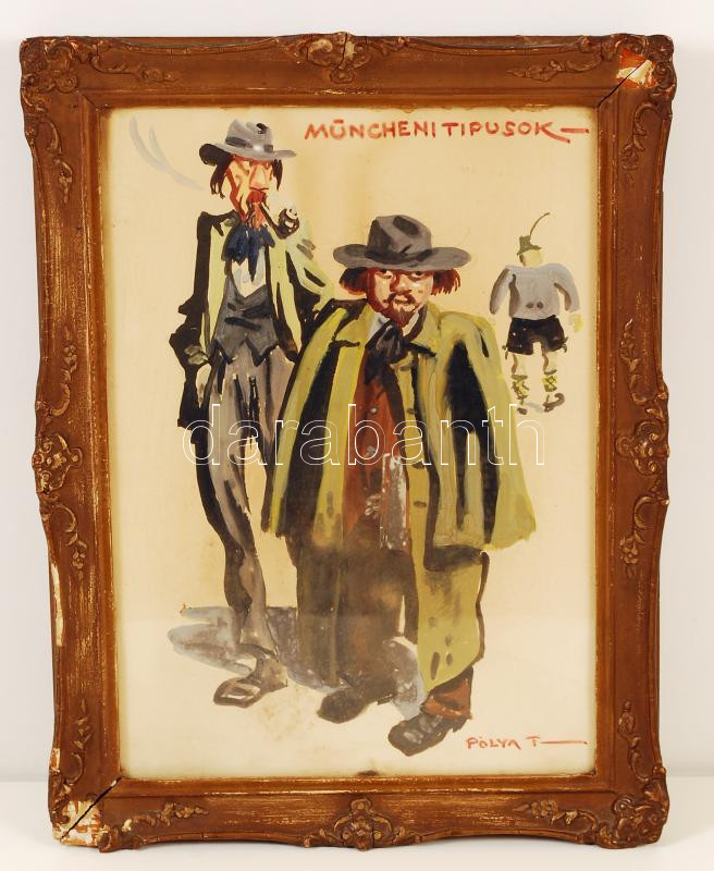 Pólya Tibor (1886-1937): Müncheni típusok. Vegyes technika, papír, jel... https://www.darabanth.com/de/19-Gross-Auktion/19.1/Kunst-Dokumente/Gemalde-und-Grafiken~6486/Polya-Tibor-1886-1937-Muncheni-tipusok-Vegyes-technika-papir-jelzett-uvegezett-keretben-~II926569