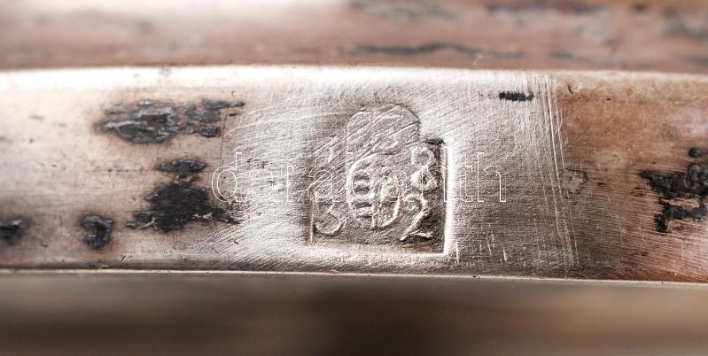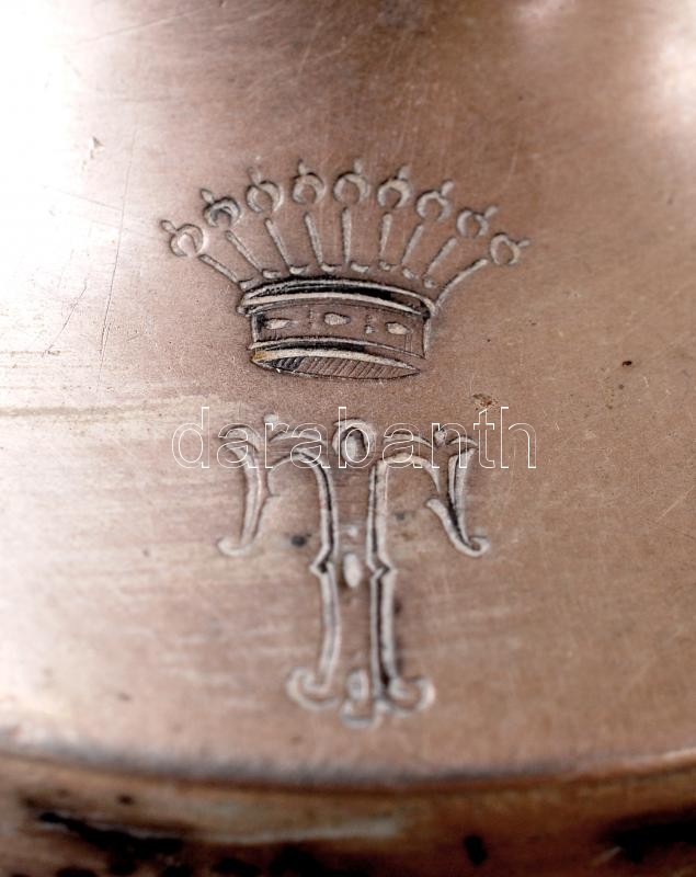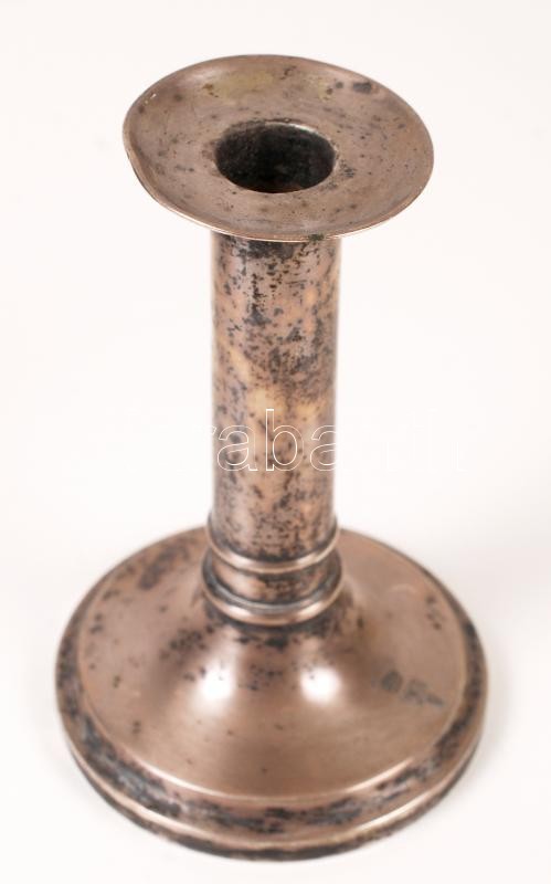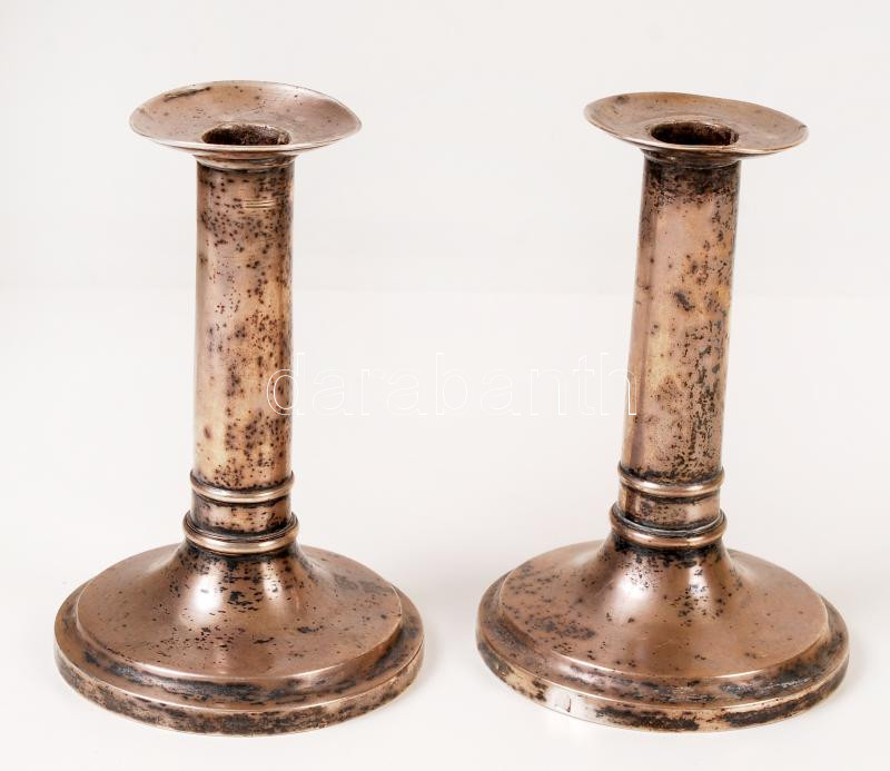 Biedermeier ezüst (Ag.) gyertyatartó pár, hercegi koronával alatta "T" monogrammal, jelzett (Bécs, 1832), mesterjeggyel, belülről súlyozva, apró horpadásokkal a tetején, bruttó:730 g, m:14 cm (2×)