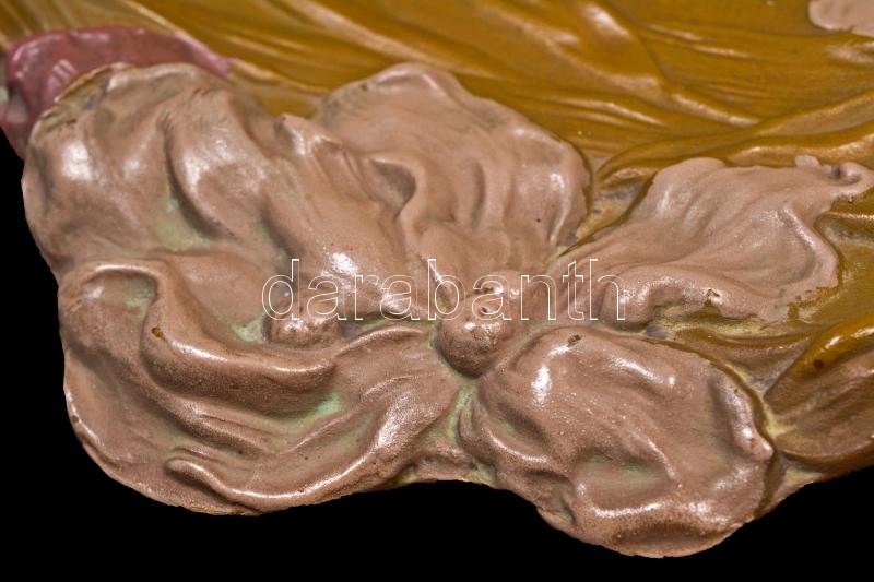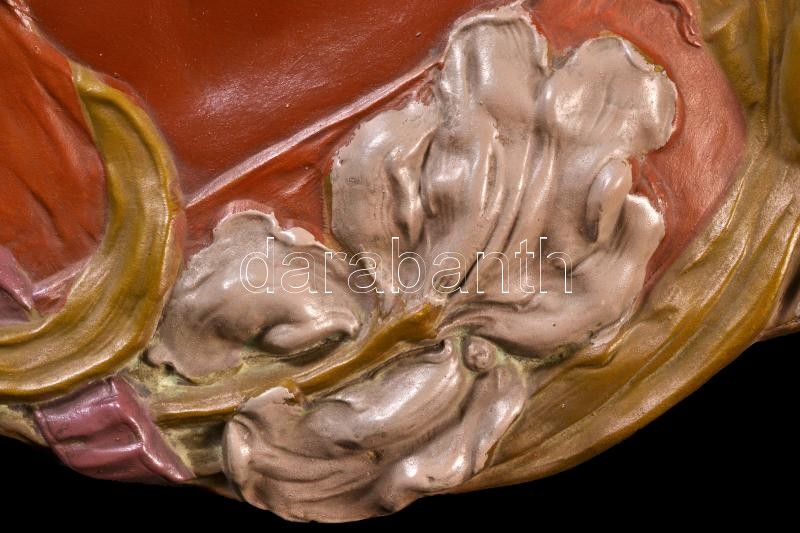 Beschreibung: Ernst Wahliss Wien, szecessziós fali dísztál, festett fajansz, jelzett, hibátlan, d:37 cm / Ernst Wahliss secession majolica plate