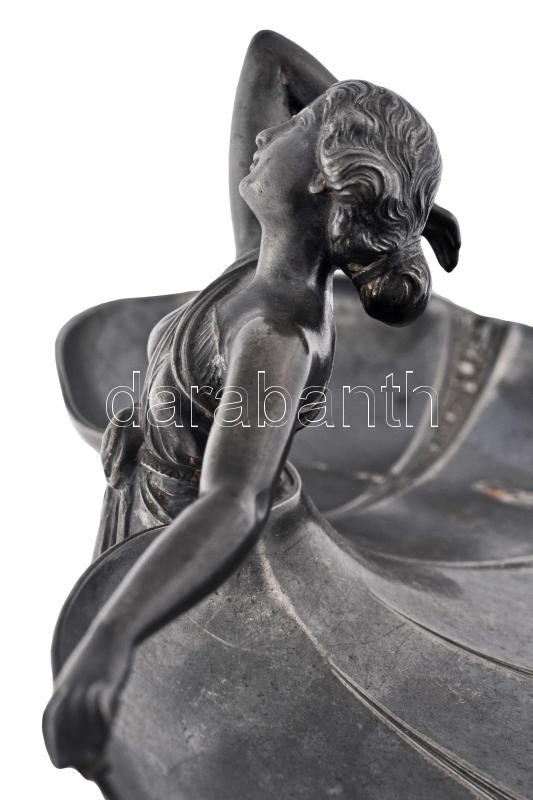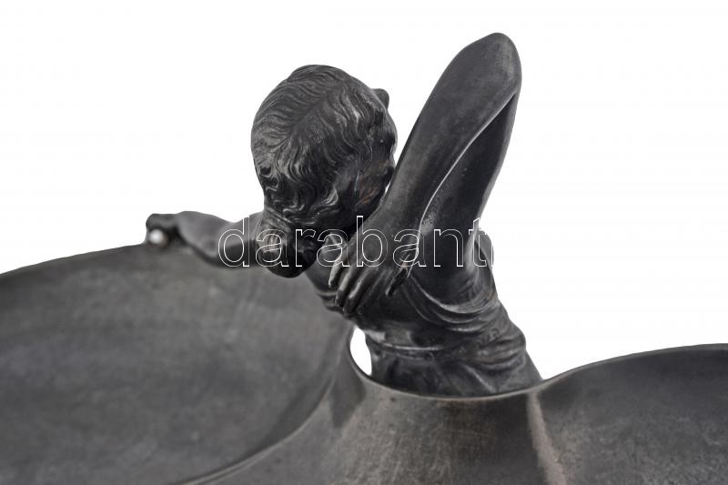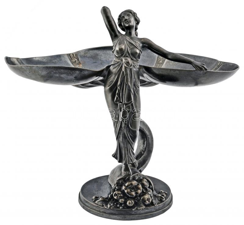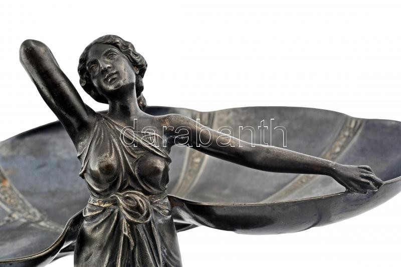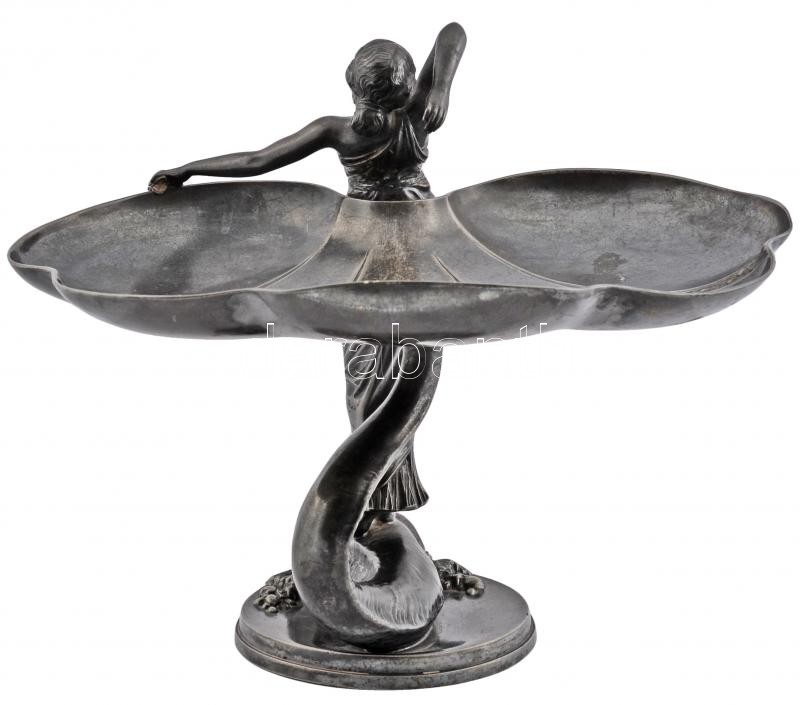 Beschreibung: WMF szecessziós figurális asztali kínáló, ezüstözött alpakka, jelzett, m:24 cm, 17×29 cm/ WMF art noveau holder, silver plated alpacca, signed