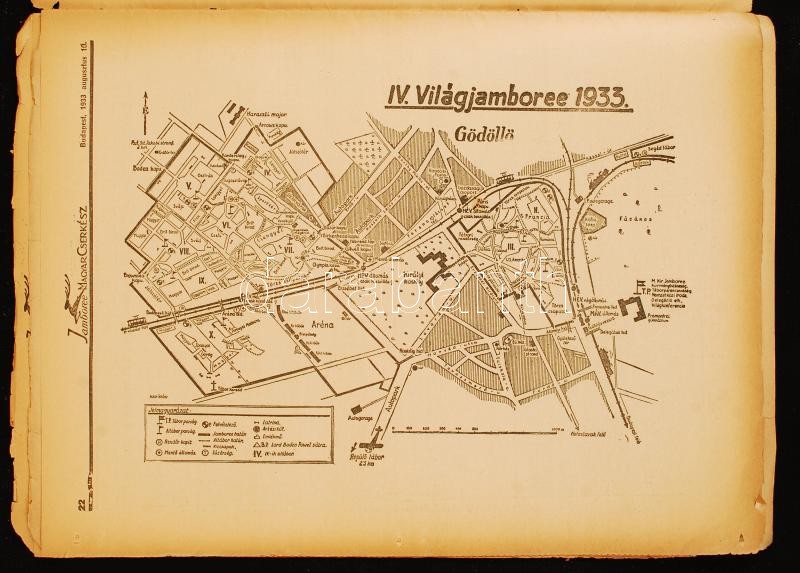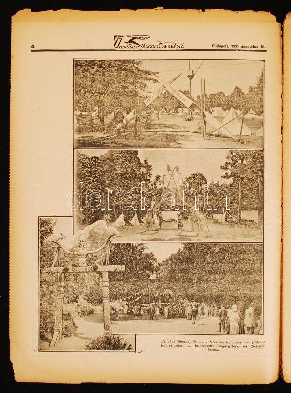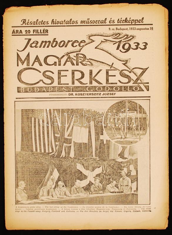1933 A Magyar Cserkész Gödöllői Jamboreen kiadott 15 száma sok képpel, térképpel, néhány lap hiánnyal néhol viseltes állapotban / 1933 Gödöllő Scout Jamboree magazine special issues for the 15 days. Some pages missing, some in damaged condition. Many photos, maps