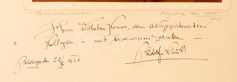 1926 Rudolf Nilius (1883-1962) osztrák karmester, zeneszerző portréja. Vajda M. Pál műterme, Budapest. A portré alatt Nilius saját kezű dedikációjával Komor Vilmos (1895-1971) karmester részére / Autograph signed photo of opera singer Rudolf Nilius 18×24 cm
