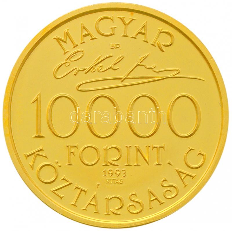 Hungary 1993. 10.000 Forint Au "Ferenc Erkel" (7g/0.986) C:PP With certificate, in original case
