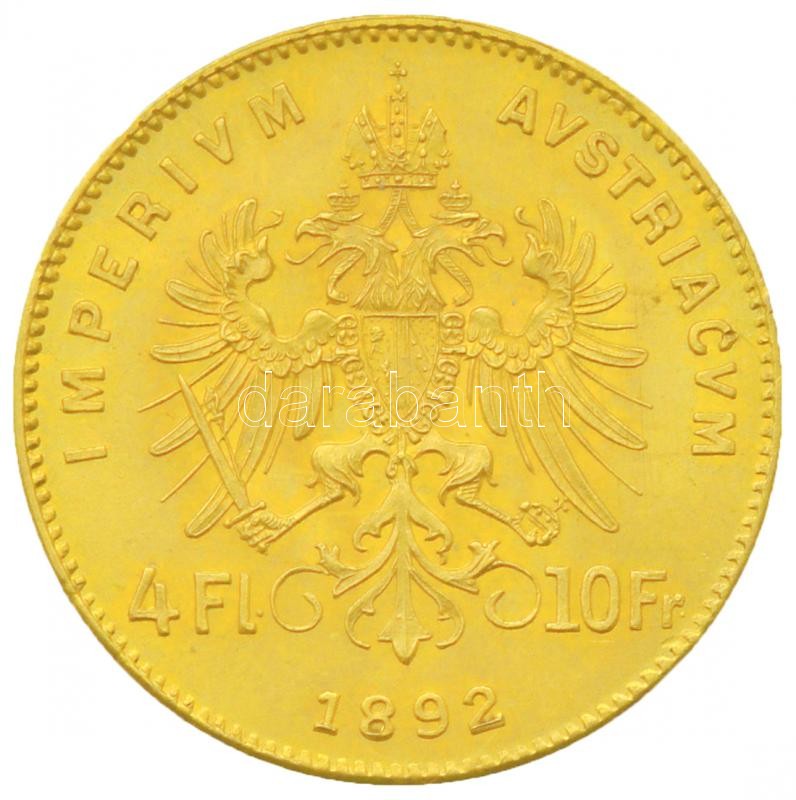 Ausztria 1892. 4Fl - 10Fr Au "Ferenc József" utánveret (3.24g/0.900) T... https://www.darabanth.com/de/19-Gross-Auktion/19.1/Numismatik/Goldmunzen-und-Gedenkmunzen~6682/Ausztria-1892-4Fl--10Fr-Au-Ferenc-Jozsef-utanveret-324g0900-T1--3Cbr3EAustria-1892-4-Flo~II908857