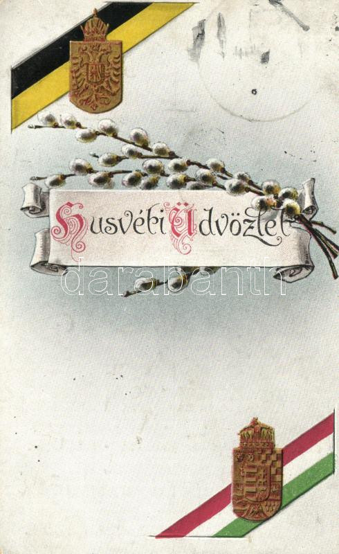 Húsvét, Osztrák-magyar zászlók / Easter, Austria-Hungary https://www.darabanth.com/de/19-Gross-Auktion/19.1/Thematik-und-Kunstlerkarten/Flagge-Wappen~6667/Husvet-Osztrak-magyar-zaszlok-Easter-Austria-Hungary~II936075