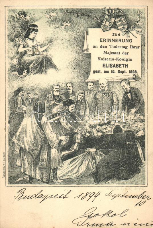 Beschreibung: 1899 Zur Erinnerung an den Todestag Ihrer Majestät der Kaiserin-Königin Elisabeth / Queen Elisabeth, Sissi, memorial postcard
