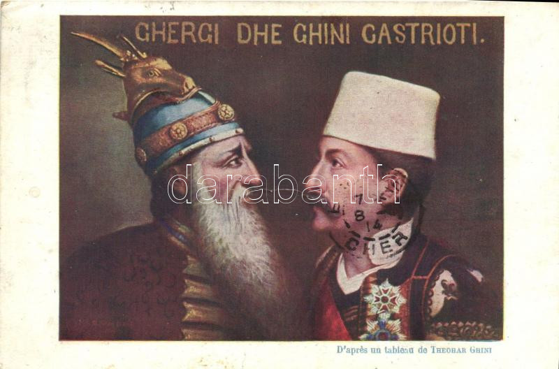 Ghergi dhe Ghini Castrioti / Albanian noblemen https://www.darabanth.com/de/19-Gross-Auktion/19.1/Thematik-und-Kunstlerkarten/Herrscher-Politiker-Konigshauser~6660/Ghergi-dhe-Ghini-Castrioti-Albanian-noblemen~II909979