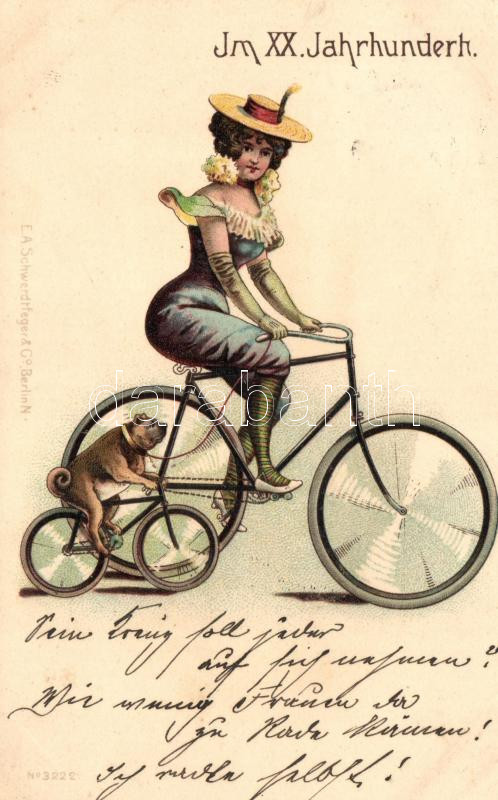 1899 Im XX. Janhrhundert; E. A. Schwerdtfeger & Co. No. 3222 / cyclis... https://www.darabanth.com/de/19-Gross-Auktion/19.1/Thematik-und-Kunstlerkarten/Sport~6653/1899-Im-XX-Janhrhundert-E-A-Schwerdtfeger-Co-No-3222-cyclist-lady-litho~II931478