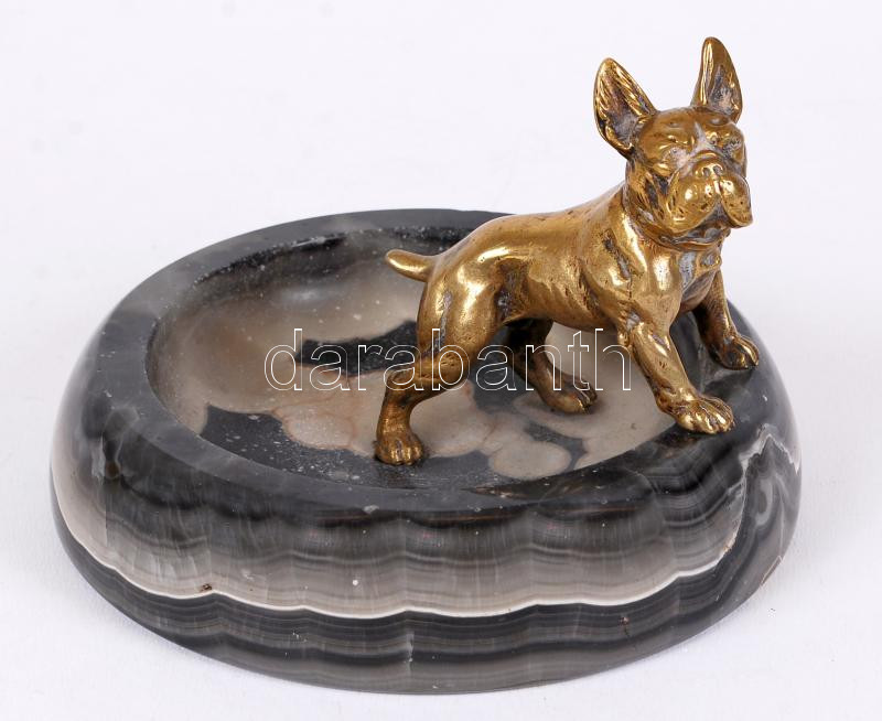 Beschreibung: Bulldog névjegykártya tartó, bronz, márvány talapzaton, d:14 cm, m:11 cm