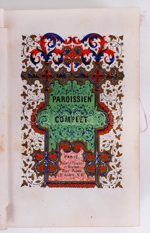 Beschreibung: Paroissien complet. Paris, francia imakönyv, színezett metszetekkel, arany lapszélekkel, hiányos, kis szakadás a gerincen