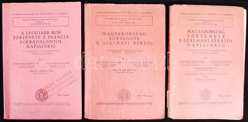 1940 Gimnáziumi történelemkönyvek 6.-8. osztályig https://www.darabanth.com/de/190-Fernauktion/190.0/Andere-Sammelgebiete/Bucher-Geschichte~800013/1940-Gimnaziumi-tortenelemkonyvek-6-8-osztalyig~II715174