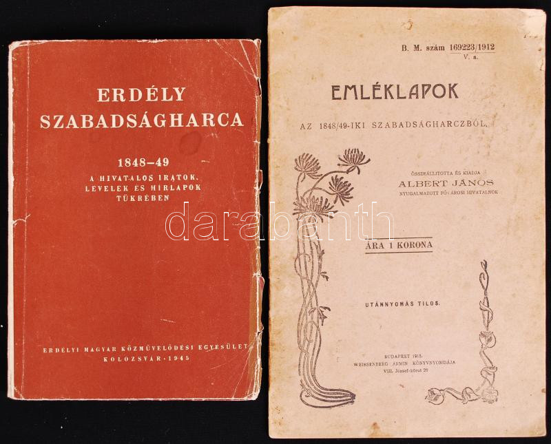 Erdély szabadságharca 1848-1849. Kolozsvár, 1945, Erdélyi Magyar Közművelődési Egyesület; Emléklapok az 1848/49-iki szabadságharczból. Összeáll. és kiad. Albert János. Bp., 1913.