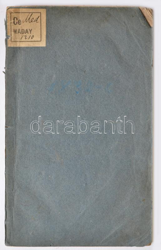 Kivonatja az 1832-1836 évi Ország Gyülésen alkotott Törvény Czikkelyeknek Betü rendhez alkalmazva, mellyet a' Földes Uraknak, ezek Tisztviselőinek, és a' Jobbágyoknak használatára közre bocsátott Medgyesy Adalbert... Győrött, 1837, (Nyom. Streibig Lipold). Korabeli papírborítóban, a címlapon a tulajdonos bejegyzésével, valamint néhány sorával mellékelve, az utolsó levelek erősen rozsdafoltosak, a borító hátulján és az utolsó egy-két lapon sérülés