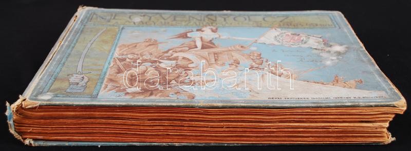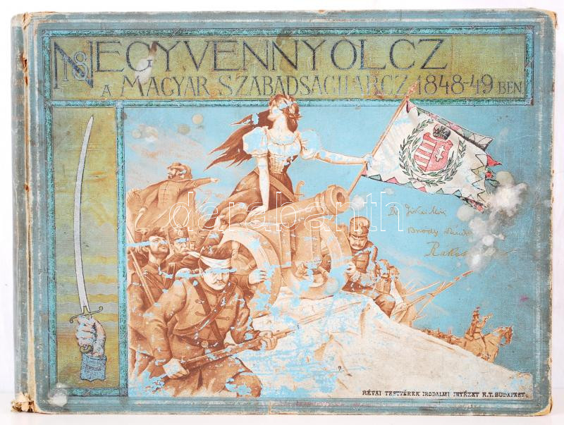 Egykorú képek, okiratok, eredeti kézírások, ereklyék, nevezetes nyomtatványok, kiáltványok, művészi emlékek. Ezer képpel. Szerk. Jókai Mór, Bródy Sándor, Rákosi Viktor. Bp., 1898, Révai. Rendkívül gazdag egész oldalas és szövegközti képanyaggal. Kiadói, festett, aranyozott Gottermayer-féle egészvászon kötésben. Haránt alakú. Közepes állapotban
