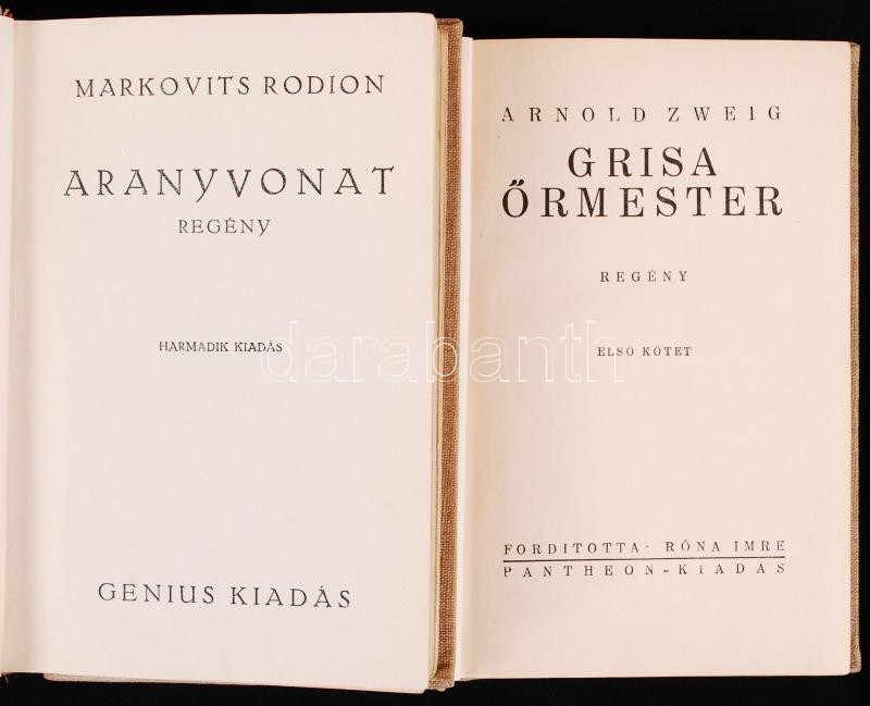 Frontregények 4db: Arnold Zweig: Grisa Őrmester, első kötet, fordította: Róna Imre. Pantheon.