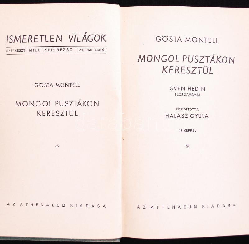 Montell, Gösta Mongol pusztákon keresztül. Sven Hedin előszavával. Bp.... https://www.darabanth.com/de/190-Fernauktion/190.0/Andere-Sammelgebiete/Bucher-Reisen-Stadte~800020/Montell-Gosta-Mongol-pusztakon-keresztul-Sven-Hedin-eloszavaval-Bp-1940-Athenaeum-140p-~II714027