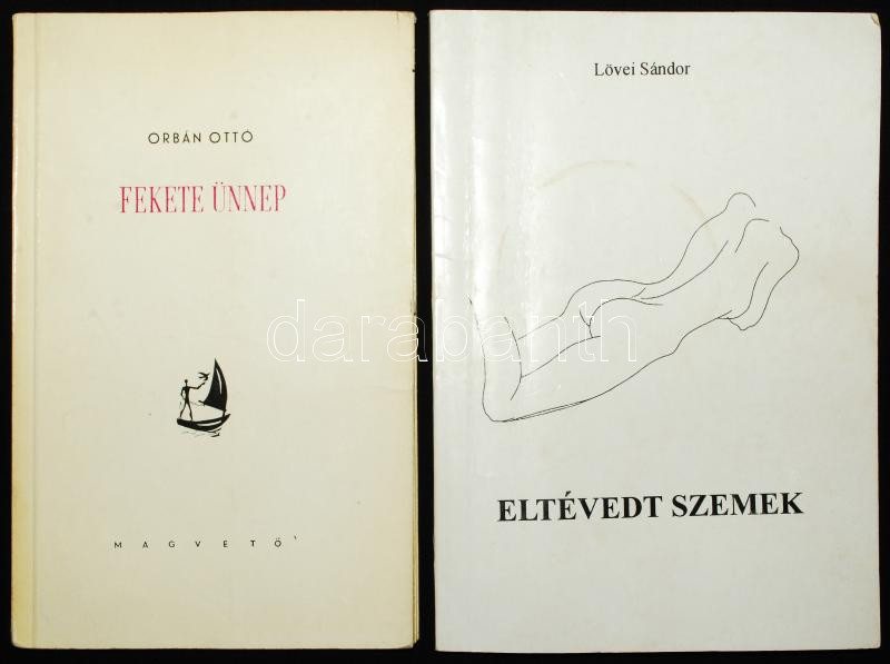 2 db verses kötet, Orbán Ottó: Fekete ünnep. Budapest 1960. Magvető. L... https://www.darabanth.com/de/190-Fernauktion/190.0/Andere-Sammelgebiete/Bucher-Sonstige-Raritaten~800044/2-db-verses-kotet-Orban-Otto-Fekete-unnep-Budapest-1960-Magveto-Lovei-Sandor-Eltevedt-~II716715