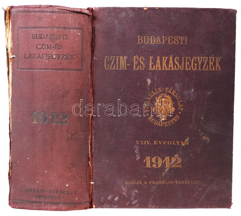 Budapesti Czím és Lakásjegyzék 1912. Vastag könyv minden információval. Minden egyesület, hivatalos intézmény, cég adataival, Név szerinti lakásmutatóval, Ujpest adatai is. Az első 80 lap hiányzik. 2410p.
