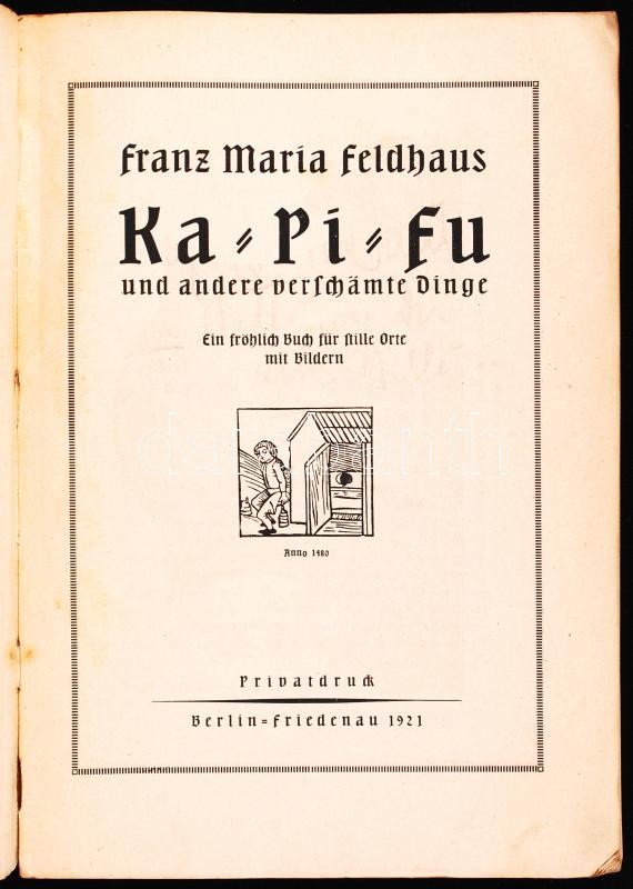 Franz Maria: Ka-Pi-Fu. Berlin, 1921, Privatdruck. Kiadói papírkötésben... https://www.darabanth.com/de/190-Fernauktion/190.0/Andere-Sammelgebiete/Bucher-Sonstige-Raritaten~800044/Franz-Maria-Ka-Pi-Fu-Berlin-1921-Privatdruck-Kiadoi-papirkotesben-megviselt-allapotban-~II697605