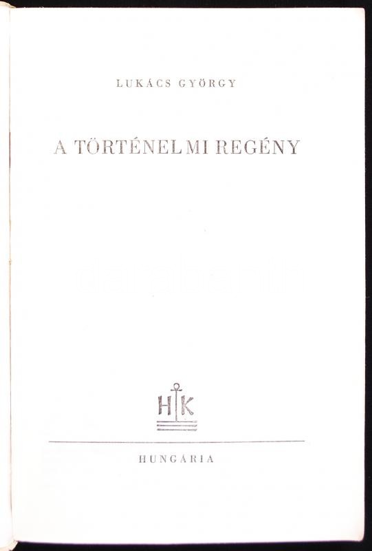 Lukács György: A történelmi regény. Budapest, 1947, Hungária Hírlapnyo... https://www.darabanth.com/de/190-Fernauktion/190.0/Andere-Sammelgebiete/Bucher-Sonstige-Raritaten~800044/Lukacs-Gyorgy-A-tortenelmi-regeny-Budapest-1947-Hungaria-Hirlapnyomda-Rt-Kiadoi-papirk~II699105