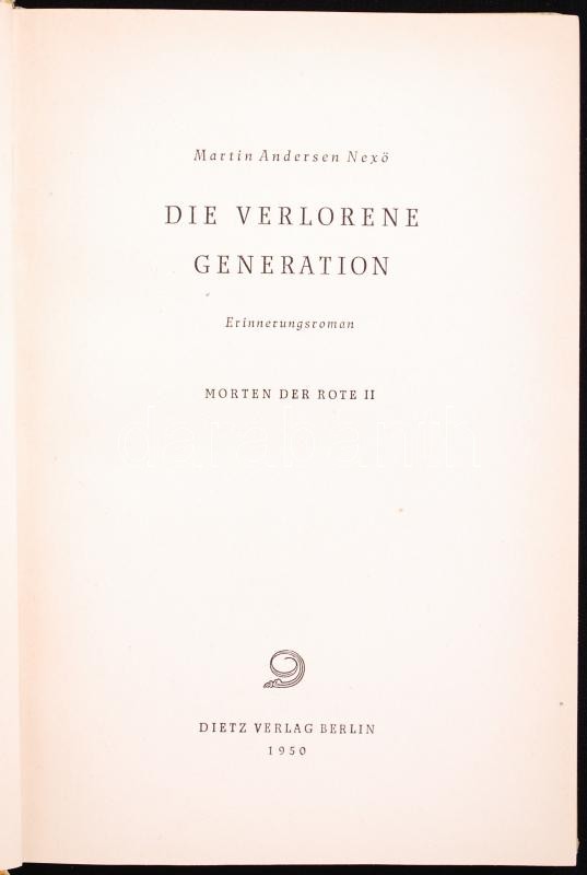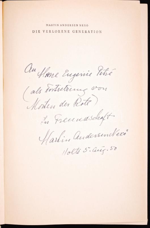 Martin Andersen Nexö: Die verlorene generation. Erinnerungsroman. Morten der Rote II. Berlin, 1950, Dietz. Kiadói kartonkötésen, dedikált példány (!) /