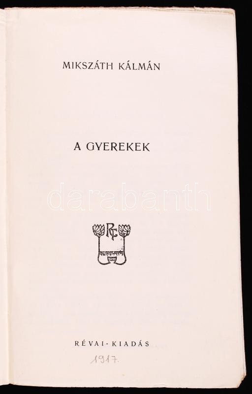 Mikszáth Kálmán: A gyerekek. Budapest, (1917), Révai-kiadás. Papírborí... https://www.darabanth.com/de/190-Fernauktion/190.0/Andere-Sammelgebiete/Bucher-Sonstige-Raritaten~800044/Mikszath-Kalman-A-gyerekek-Budapest-1917-Revai-kiadas-Papirboritoban~II697636