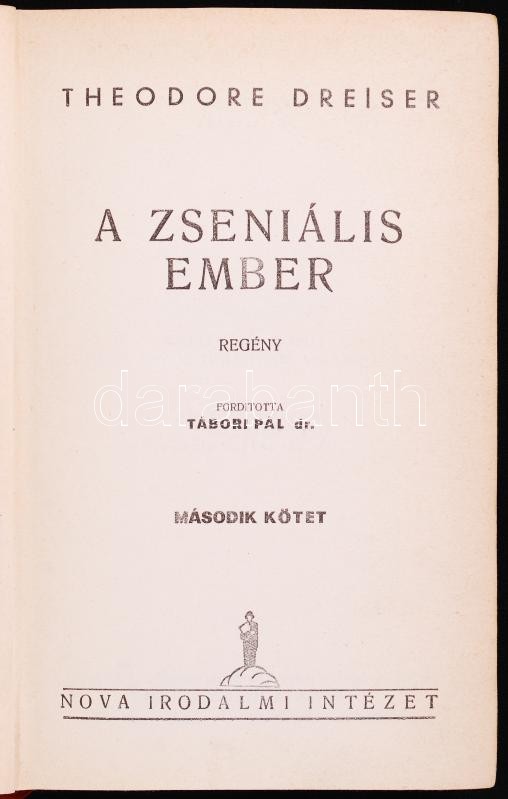 Theodor Dreiser: A zseniális ember II. Budapest 1937. Nova. https://www.darabanth.com/de/190-Fernauktion/190.0/Andere-Sammelgebiete/Bucher-Sonstige-Raritaten~800044/Theodor-Dreiser-A-zsenialis-ember-II-Budapest-1937-Nova~II692437