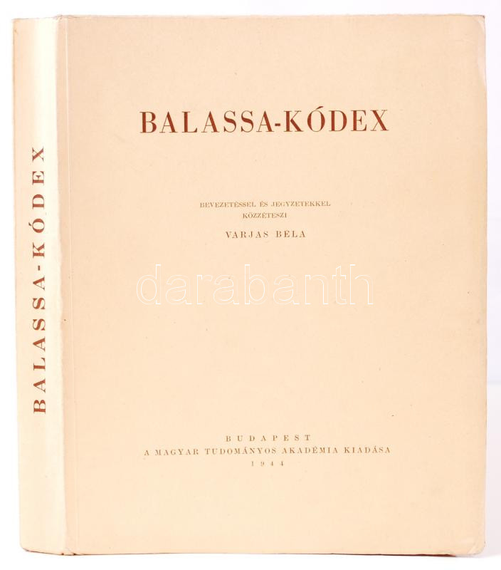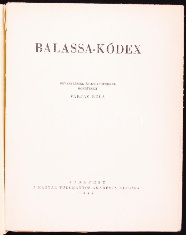 Varjas Béla: Balassa-Kódex. Budapest, 1944, A Magyar Tudományos Akadém... https://www.darabanth.com/de/190-Fernauktion/190.0/Andere-Sammelgebiete/Bucher-Sonstige-Raritaten~800044/Varjas-Bela-Balassa-Kodex-Budapest-1944-A-Magyar-Tudomanyos-Akademia-Kiadasa-Kiadoi-papi~II699063
