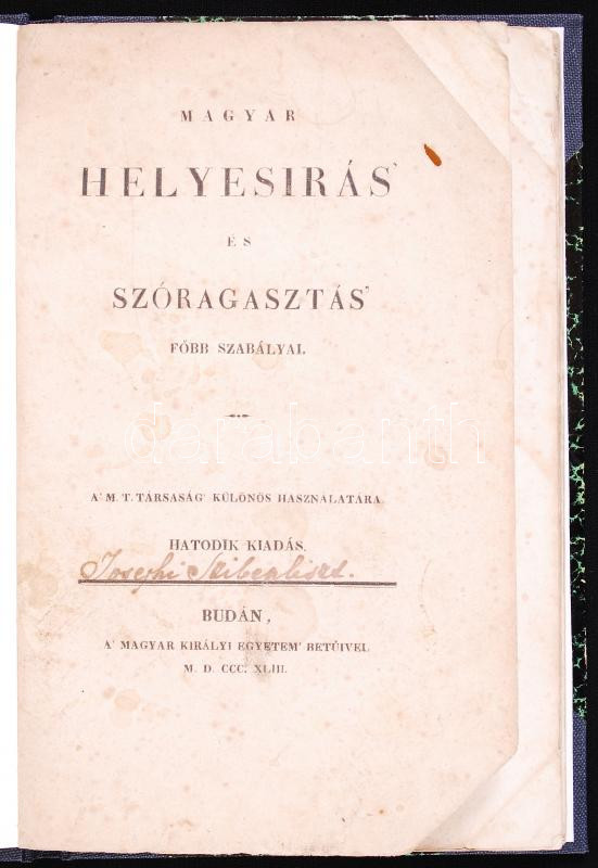[Vörösmarty Mihály]: Magyar helyesirás' és szóragasztás' főbb szabálya... https://www.darabanth.com/de/190-Fernauktion/190.0/Andere-Sammelgebiete/Bucher-Sonstige-Raritaten~800044/Vorosmarty-Mihaly-Magyar-helyesiras-es-szoragasztas-fobb-szabalyai-A-M-T-Tarsasa~II713805
